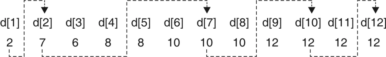 = min{6 + 5, 5 + 2} = min{11, 7} = 7 p[8] = 10
